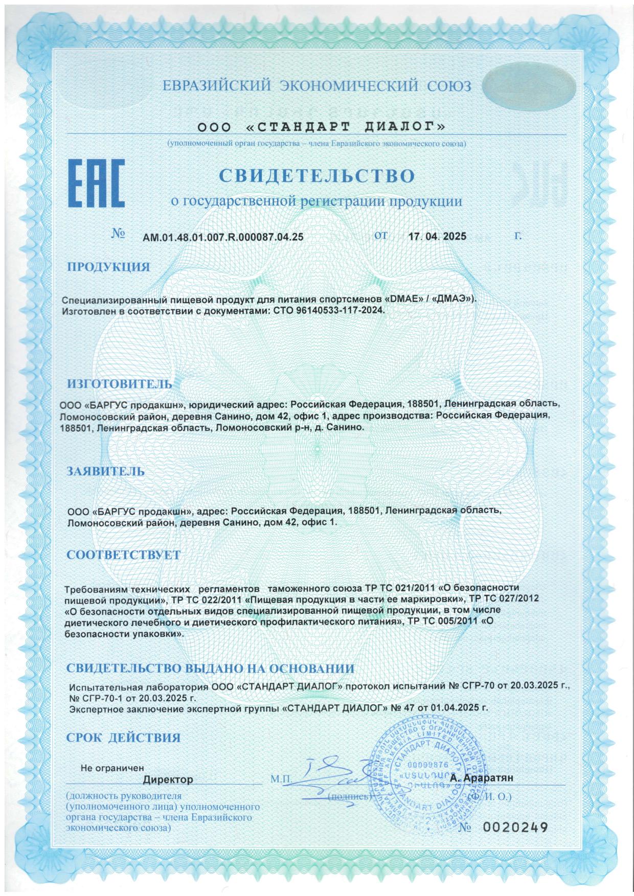 Специализированный пищевой продукт для питания спортсменов диметиламиноэтанол (DMAE/ ДМАЭ) - нейрометаболический стимулятор, относящийся к группе ноотропов.