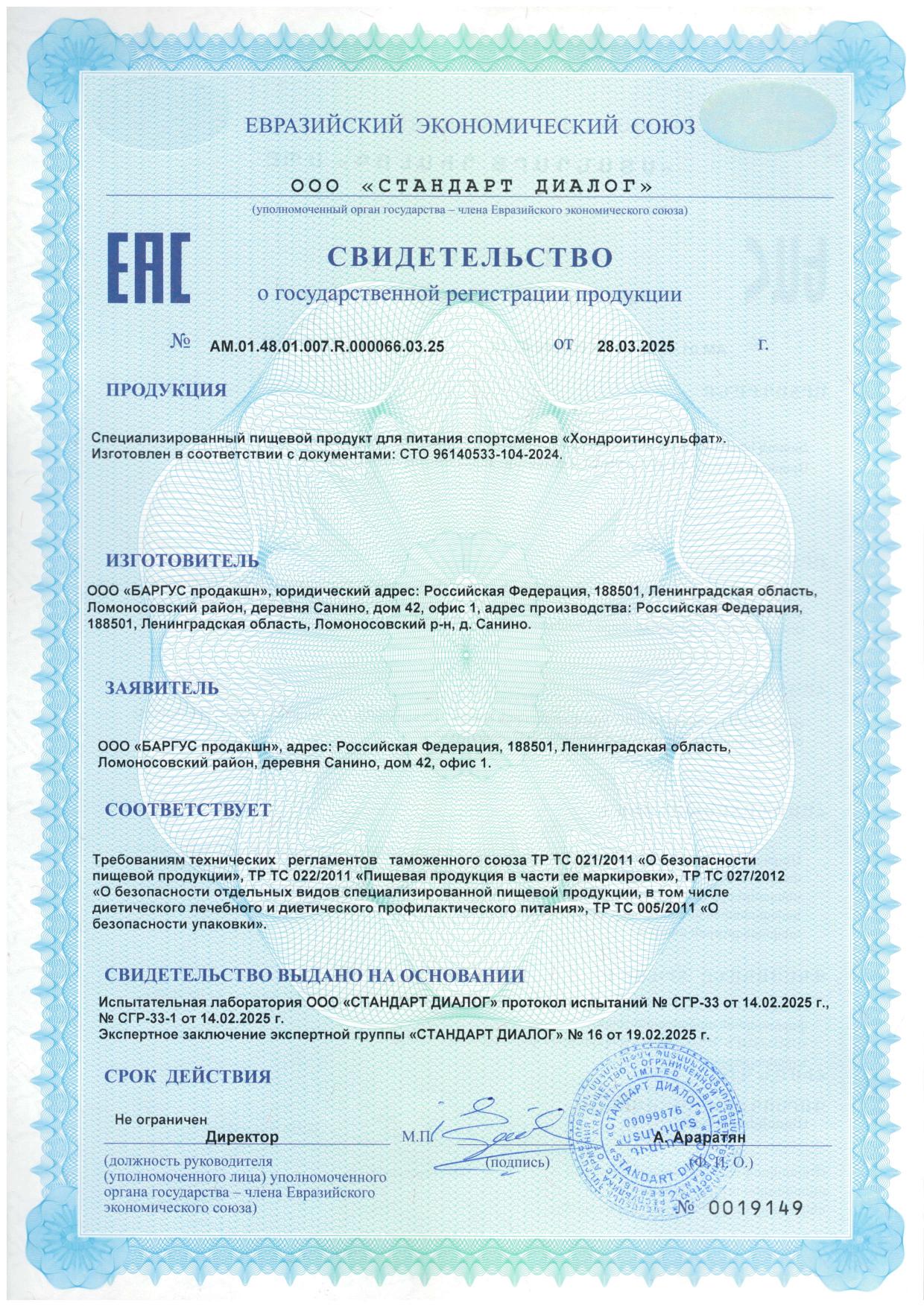 Специализированный пищевой продукт для питания спортсменов хондроитин сульфат - Используется как хондоропротектор и укрепляющая добавка при силовых нагрузках спортсменами.