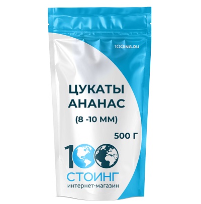 Цукаты ананас (натуральный цвет) 8-10мм (0,5кг.)